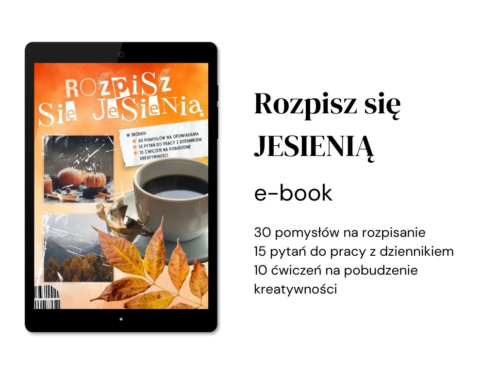 W tym e-booku każda z nas znajdzie czułe wsparcie i solidną dawkę inspiracji. Klimat jesieni oraz przemyślane ćwiczenia zapraszają do zatrzymania się i wsłuchania w siebie. Bo właśnie długie wieczory i chłodne poranki sprzyjają pisaniu – temu cichszemu, bardziej osobistemu.